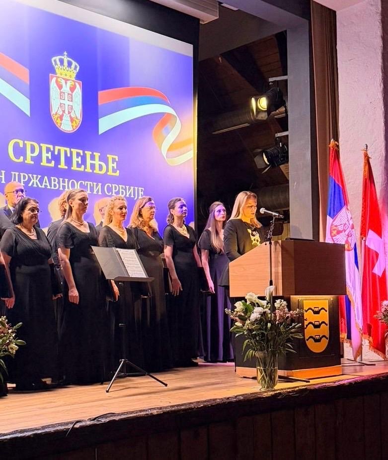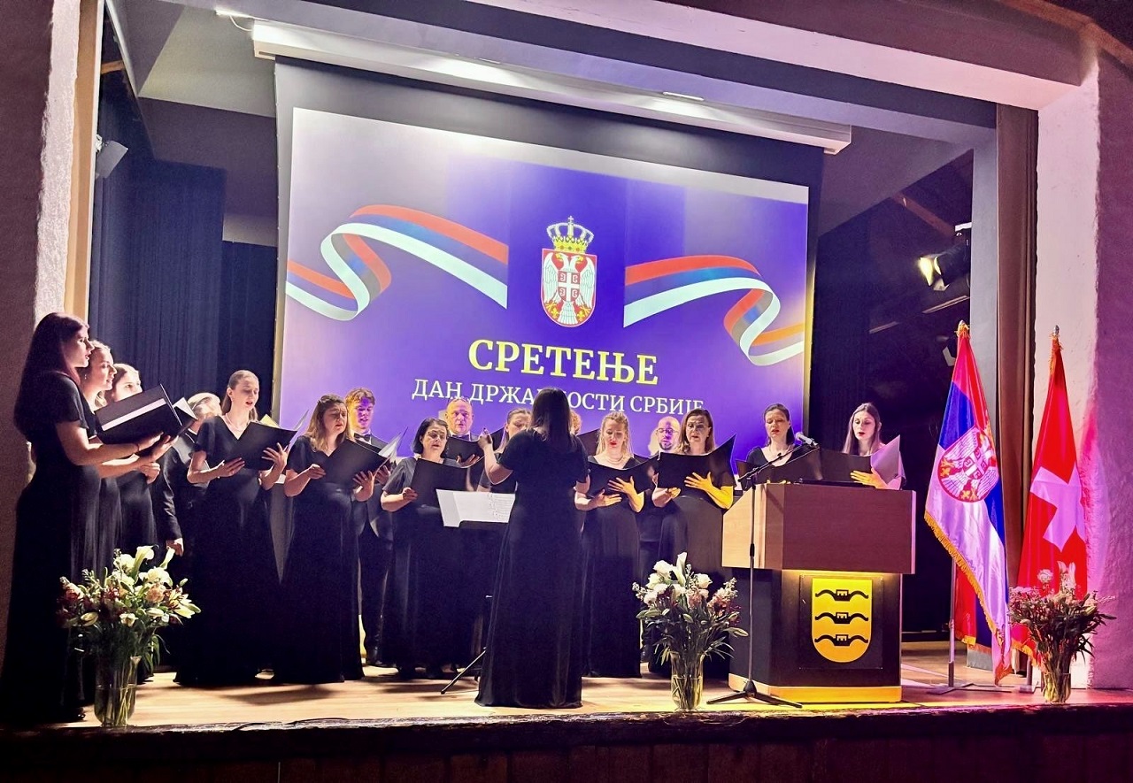 Poseban svečani ton događaju dao je hor „Bogorodičin“, koji je svojim dostojanstvenim i nadahnutim izvođenjem himni Republike Srbije i Švajcarske Konfederacije uneo snažan emotivni naboj i osećaj ponosa među prisutne. Ovaj ugledni hor, poznat po negovanju duhovne i tradicionalne muzike, svojim profesionalnim pristupom i usklađenim višeglasjem još jednom je potvrdio visok umetnički nivo i značaj kulturnog stvaralaštva naše zajednice u dijaspori.